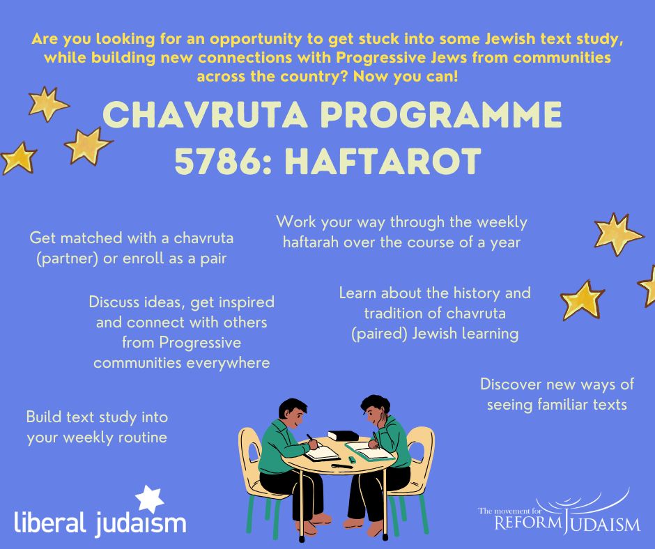 After a fantastic year of exploring the weekly Torah portion together, we are delighted to announce that – by popular demand – Progressive Judaism’s Chavrutah programme is starting a new year of study!